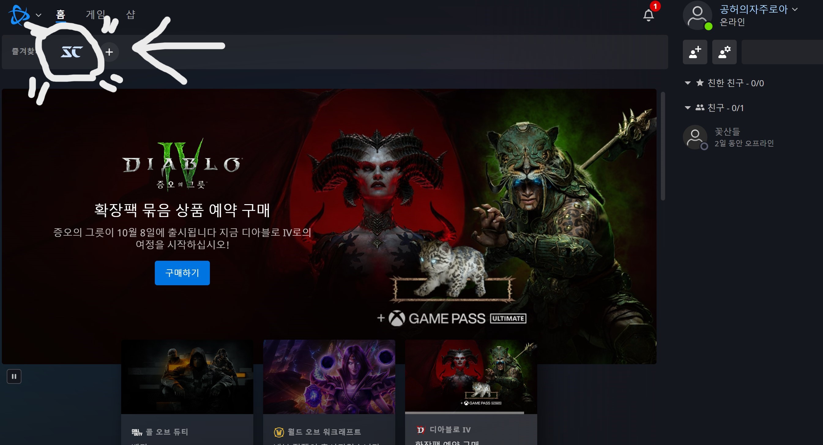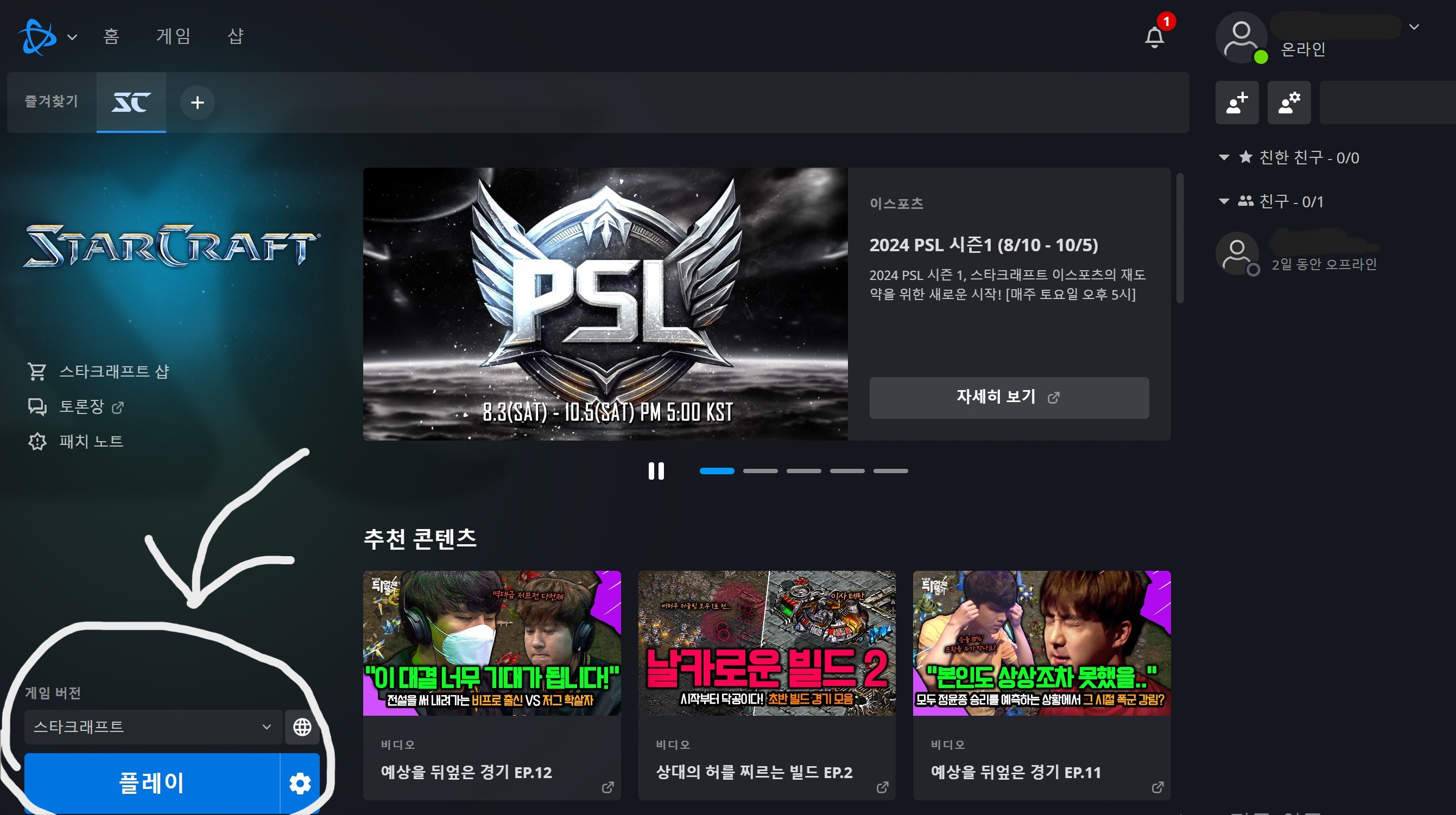 ❸ 설치한 배틀넷을 실행하고, 스타크래프트 다운로드 배너를 찾아야 하는데 이 부분에서 스타크래프트 리마스터 다운로드와 헷갈려하는 분들이 많아요. 왼쪽 상단에 'SC'라고 적혀 있는 부분을 통해서 스타크래프트 무료다운로드 화면으로 이동할 수 있습니다. 쉽게 확인할 수 있도록 아래의 사진에 동그라미 표시를 해둘게요.